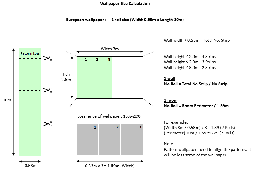 US | 0.53m width x 10m length per roll | 1.59m width x 3m height per roll |